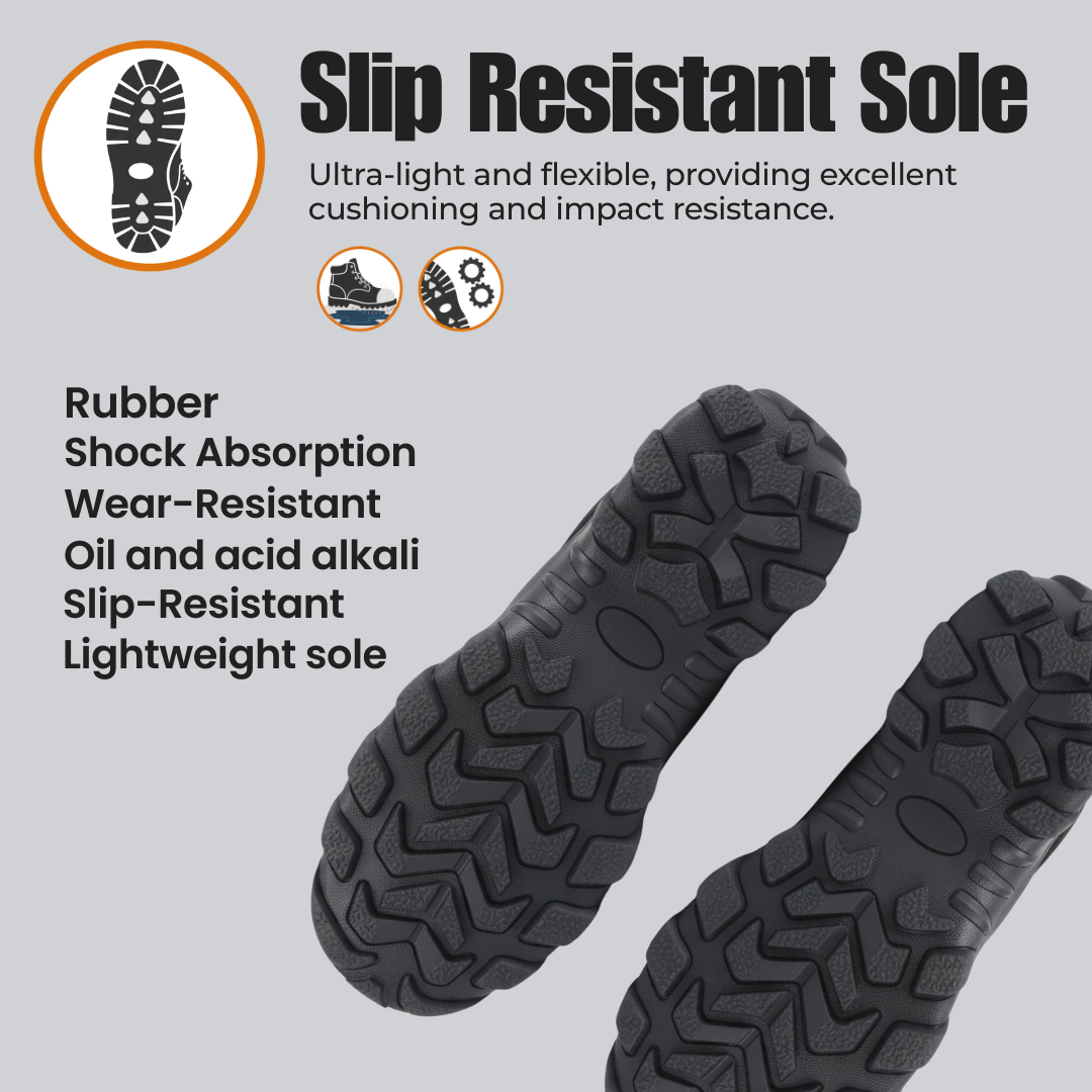 Sole Rubber - Non-slip, Shock absorption, and wear-resistant for maximum safety, making it ideal for slippery, rugged, and demanding work conditions. |