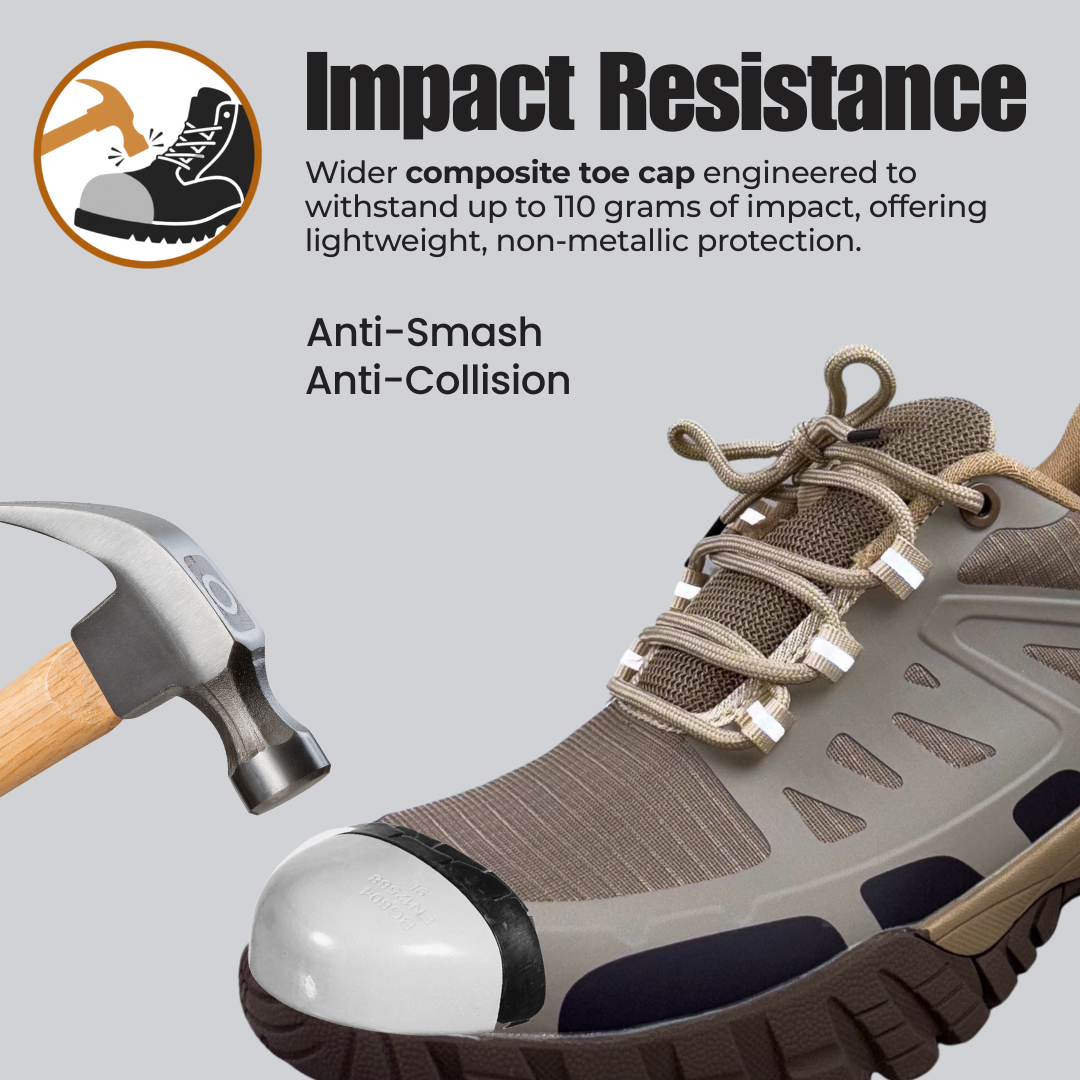 Modern Safety Shoes. Built tough for the job site, designed sleek for the streets. Whether you're working hard or walking proud, step into safety without sacrificing fashion.