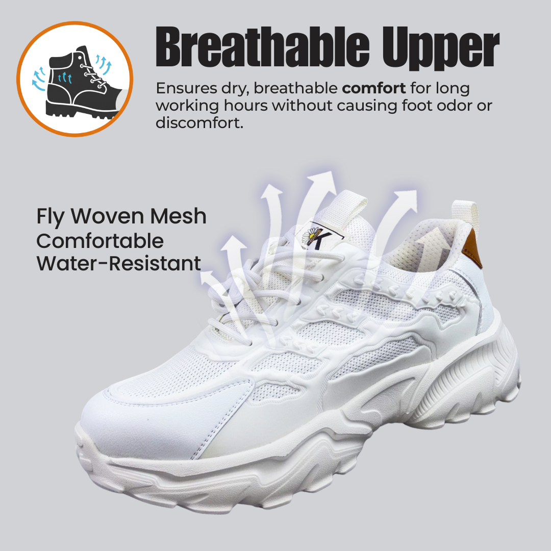 Upper material Fly Woven Mesh - Ensures dry, breathable comfort for long working hours without causing foot odor or discomfort. The fabric lining has better moisture-wicking performance. |