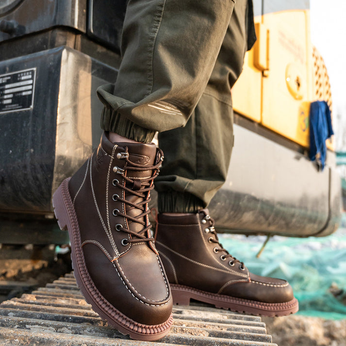 Built tough for the job site, made from genuine cowhide leather, this shoe offers enhanced durability, breathability, and long-lasting comfort for extended working hours. It keeps your feet dry and prevents odor, even during the toughest days.