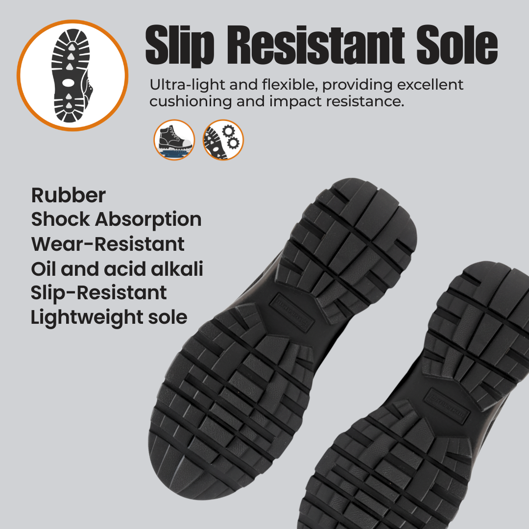Sole Rubber - Non-slip, Shock absorption, and wear-resistant for maximum safety, making it ideal for slippery, rugged, and demanding work conditions. |