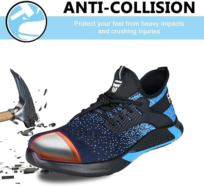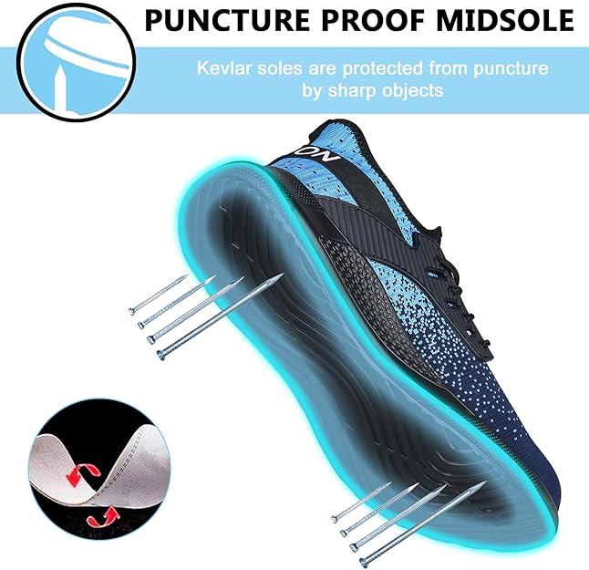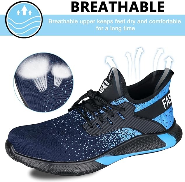 Upper material Premium Breathable Fly Woven Mesh - Ensures dry, breathable comfort for long working hours without causing foot odor or discomfort. The fabric lining has better moisture-wicking performance. |