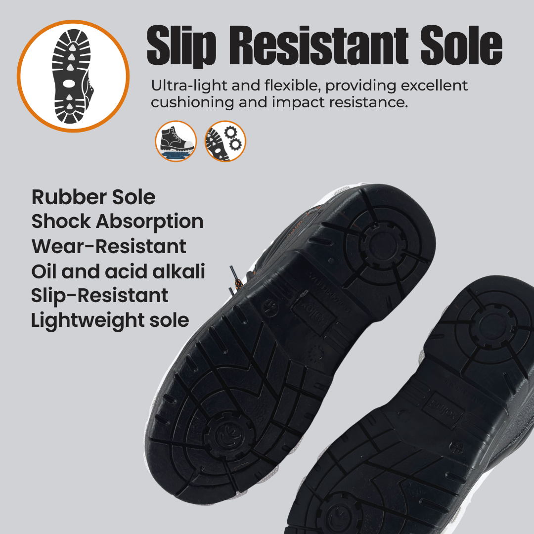 Sole Rubber - Non-slip, Shock absorption, and wear-resistant for maximum safety, making it ideal for slippery, rugged, and demanding work conditions. |