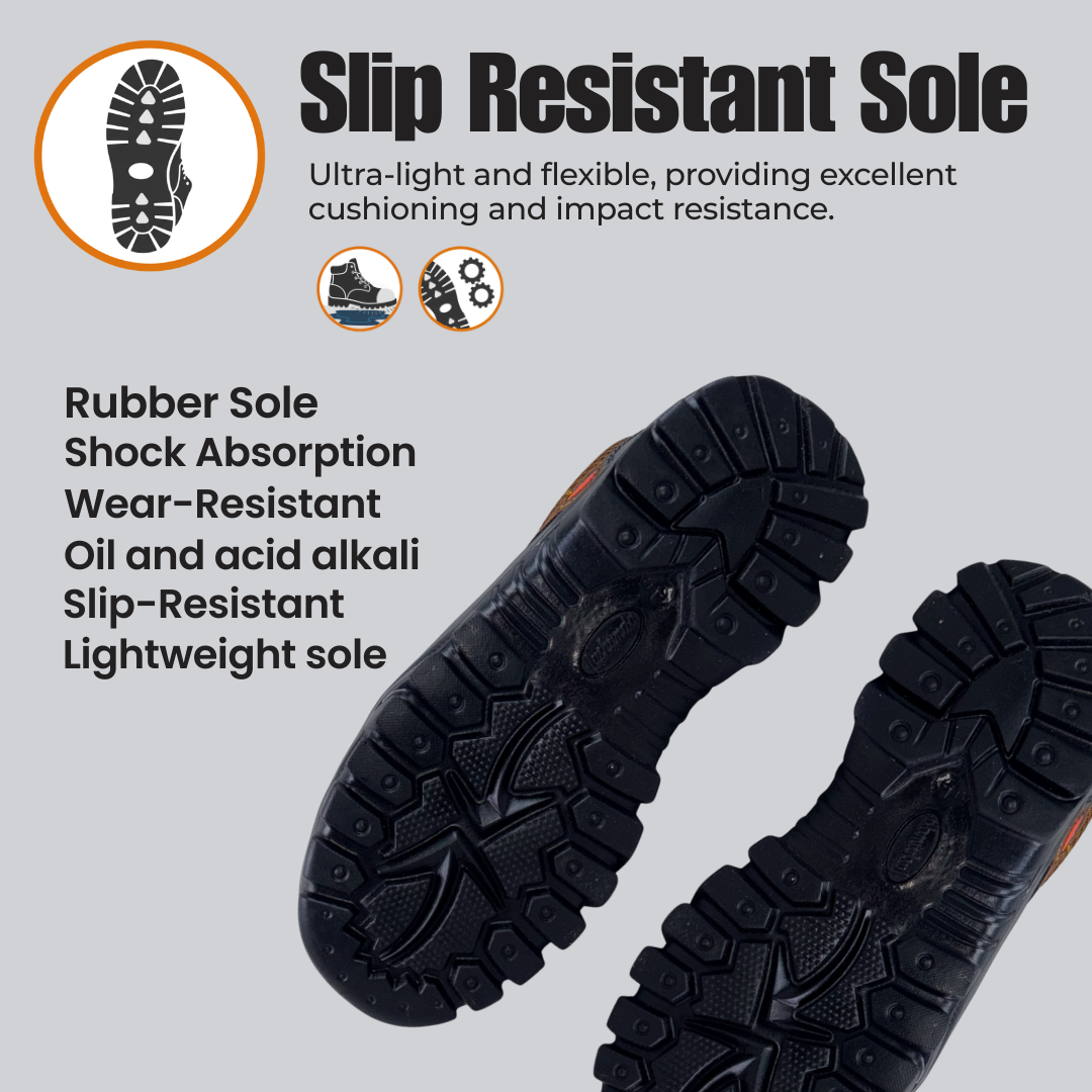 Sole Rubber - Lightweight and durable, offering non-slip grip and shock absorption for reliable stability and comfort in demanding environments. |