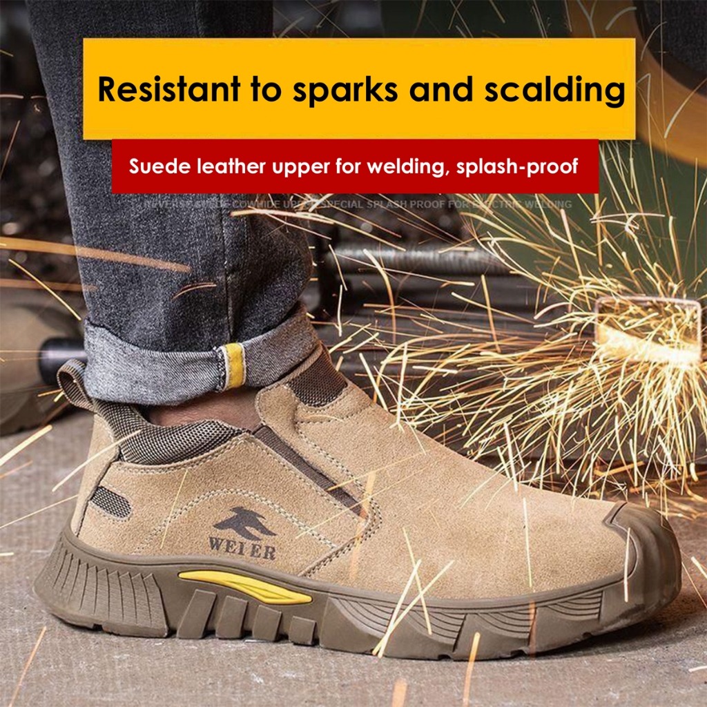 Upper material Suede Leather - Ensures dry, breathable comfort for long working hours without causing foot odor or discomfort. The fabric lining has better moisture-wicking performance. |